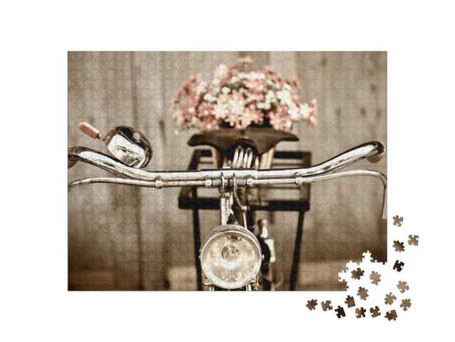 Puzzle „Bicicletta d'epoca con un bouquet di fiori sul portapacchi“