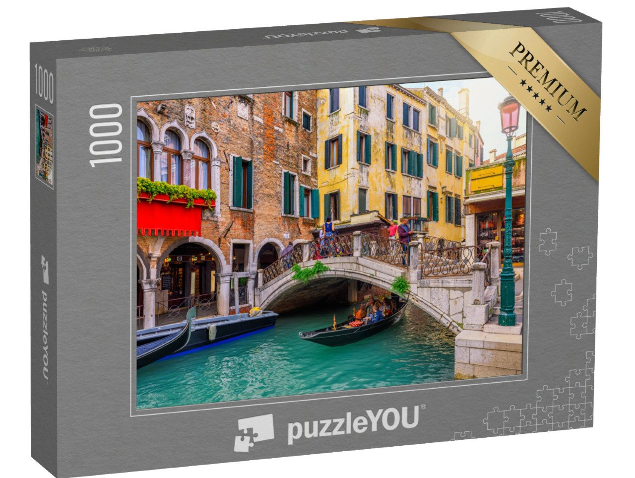 Puzzle „Canale stretto con gondola e ponte a Venezia, Italia. Architettura e monumenti di Venezia“