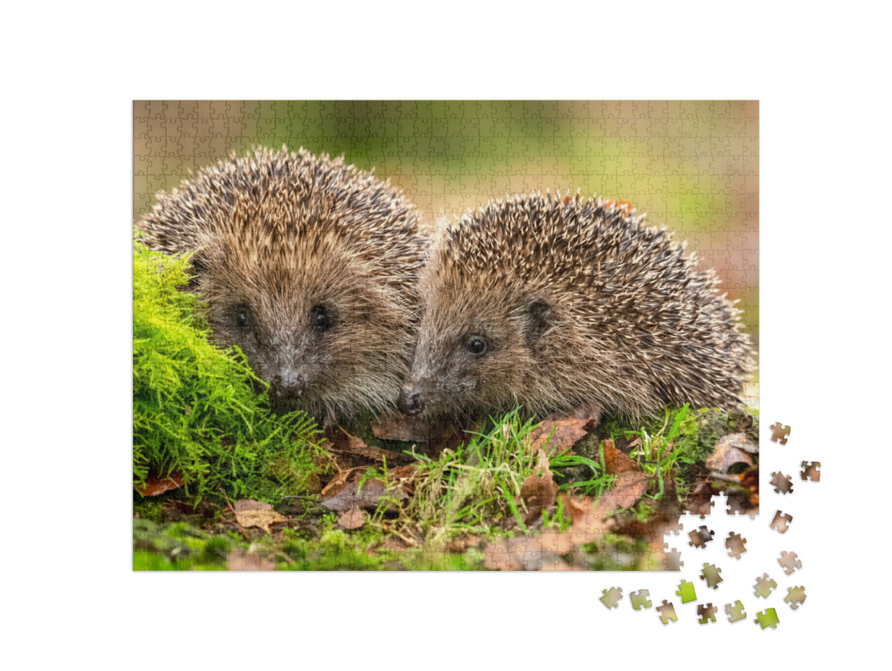 Puzzle „Due ricci che si coccolano tra muschio e foglie“