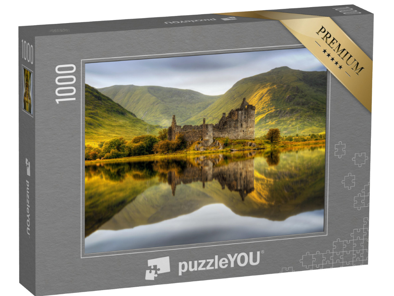 Puzzle „Il castello di Kilchurn si riflette nel Loch Awe al tramonto, Scozia“