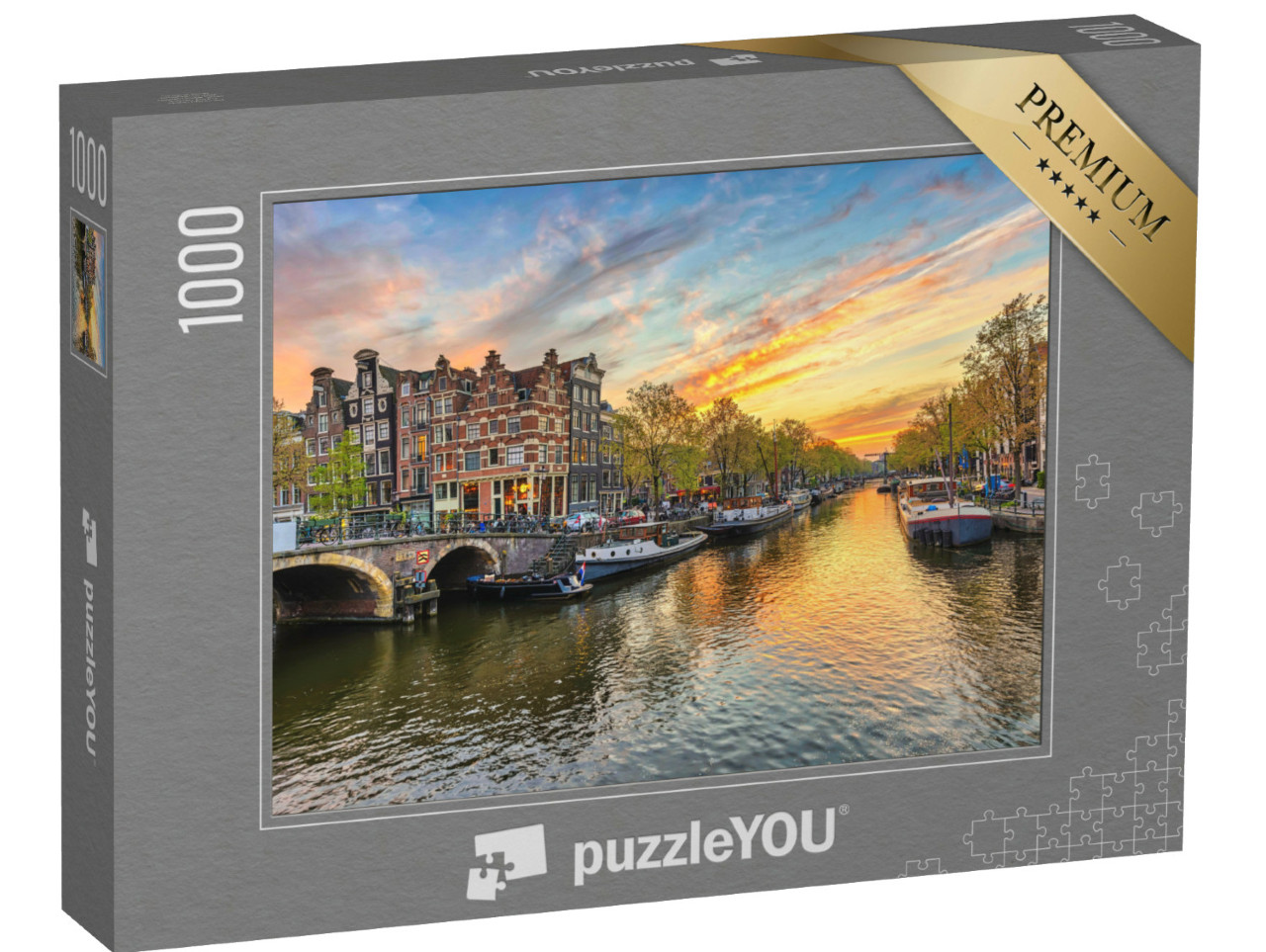 Puzzle „Lo skyline della città di Amsterdam sul lungomare Gracht, Amsterdam, Paesi Bassi“