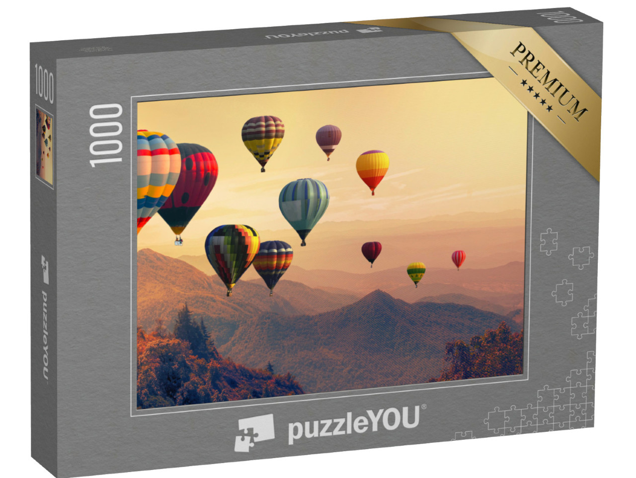Puzzle „Mongolfiera su un'alta montagna al tramonto“