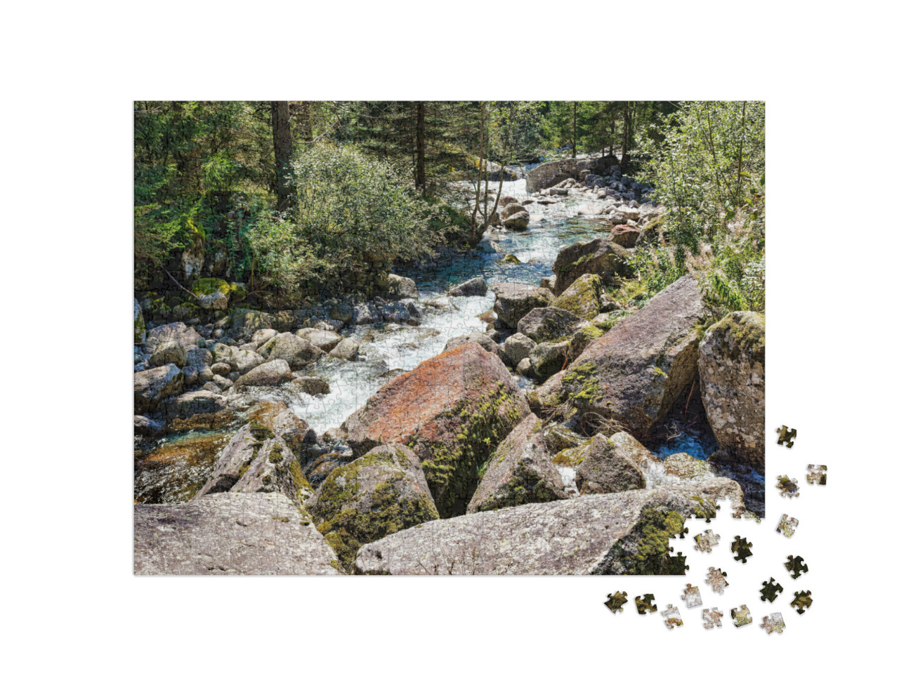 Puzzle „Paesaggio alpino sul torrente che scorre nella Val di Mello, in Valtellina a Sondrio“
