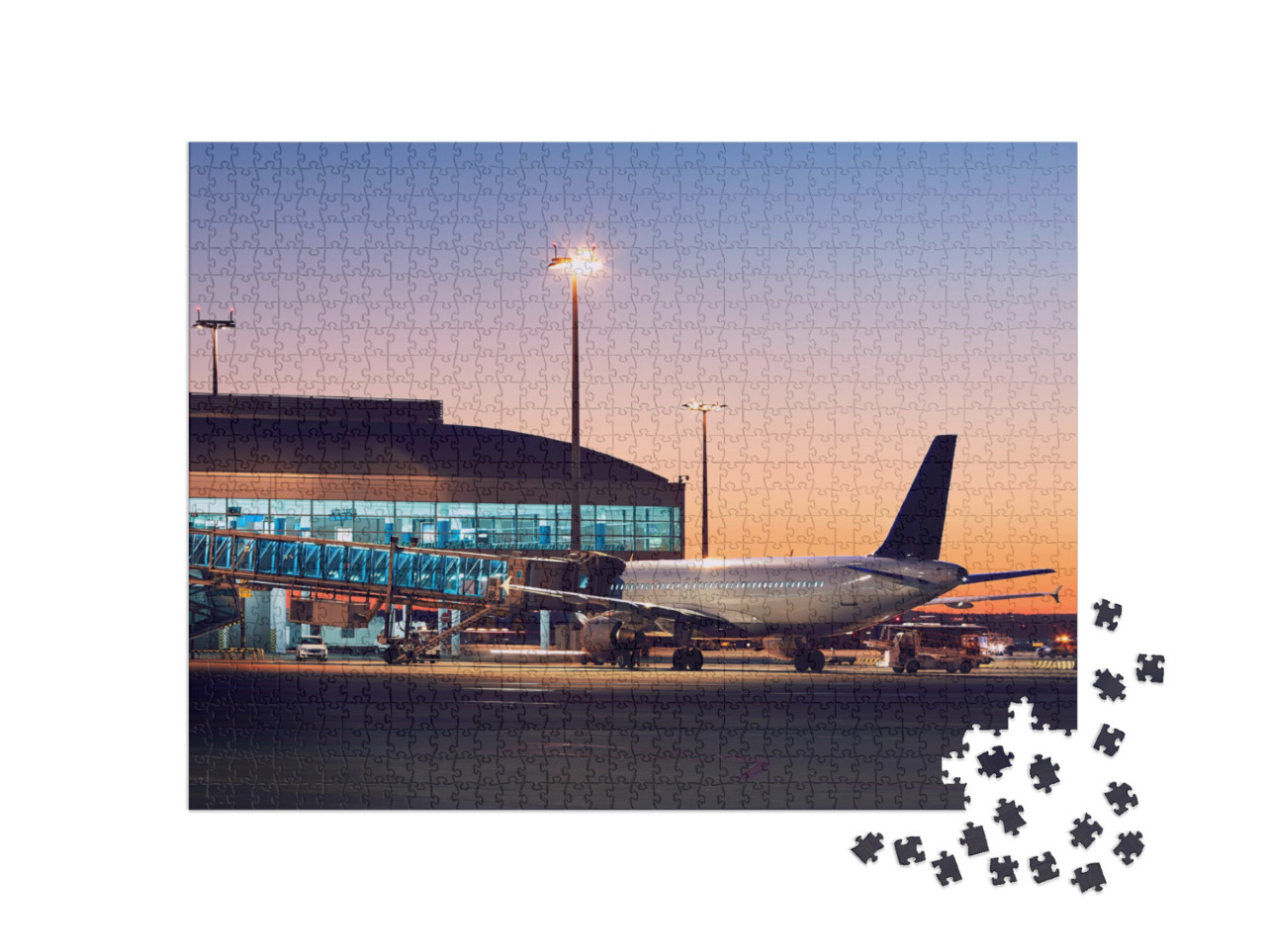 Puzzle „Preparazione dell'aeromobile prima del volo nel cielo serale“