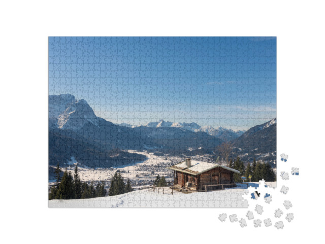 Puzzle „Rifugio invernale con Zugspitze e Garmisch-Partenkirchen, Baviera“