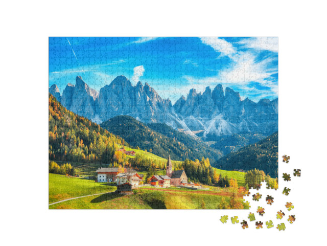 Puzzle „Santa Maddalena in den Dolomiten, Val di Funes, Trentino-Südtirol, Italien“