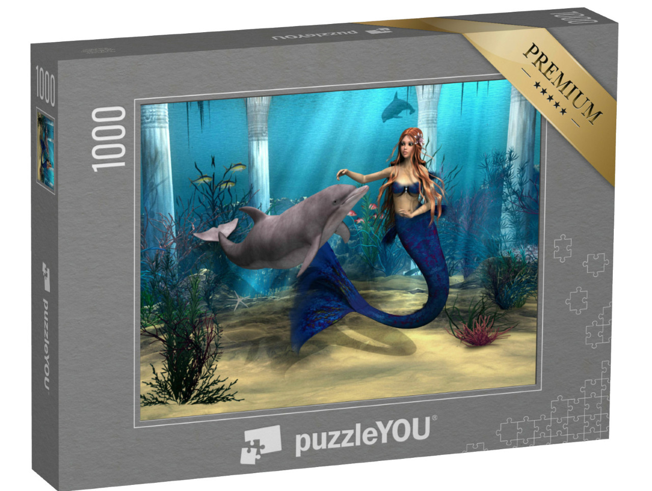 Puzzle „Sirena e delfino nell'oceano fantastico“