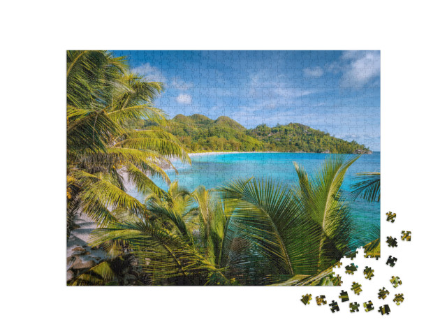 Puzzle „Spiaggia esotica paradisiaca sull'isola di Mahe, Seychelles“