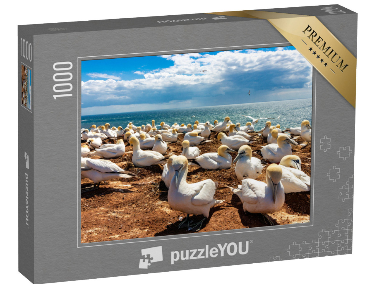 Puzzle „Stormo di uccelli in riposo sull'isola di Helgoland, Germania“