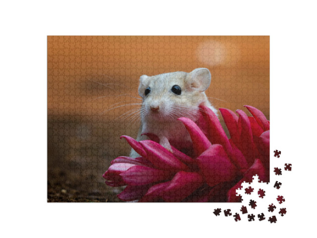 Puzzle „Un simpatico gerbillo su un fiore rosa“