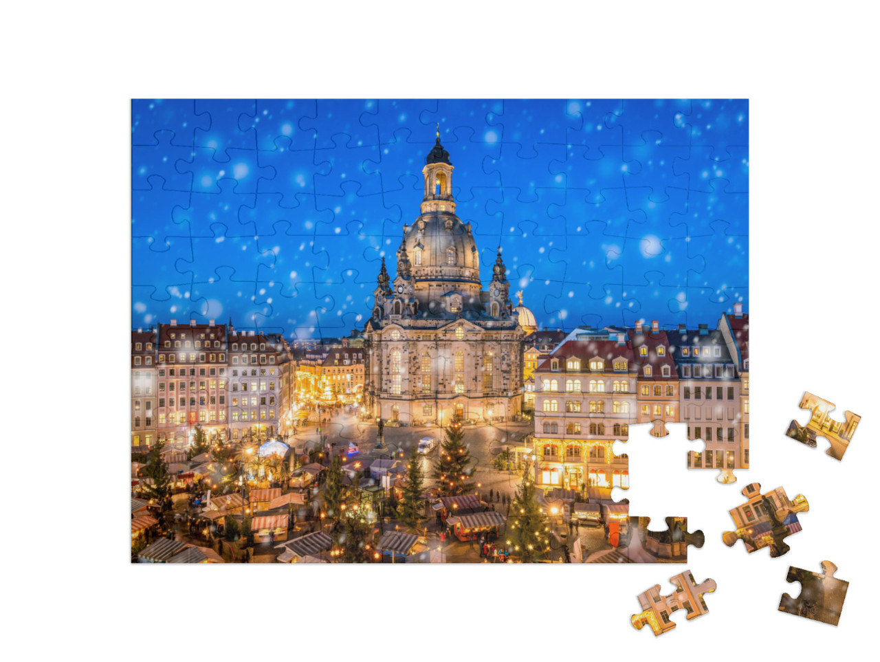 Puzzle „Mercatino di Natale davanti alla Frauenkirche di Dresda sul Neumarkt, Sassonia“