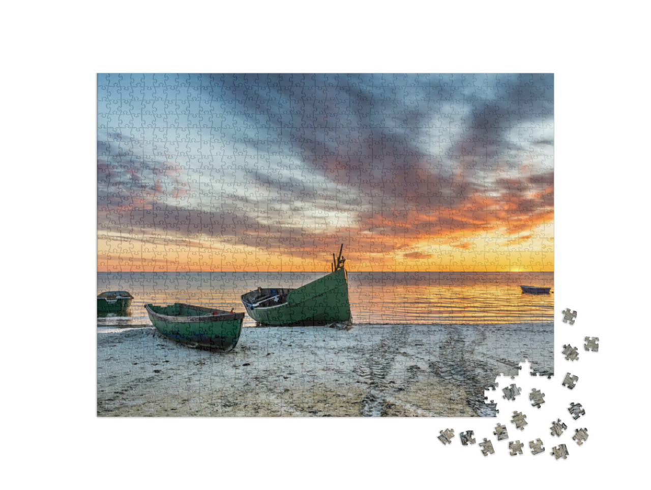 Puzzle „Barca da pesca ancorata sulla spiaggia sabbiosa del Mar Baltico“