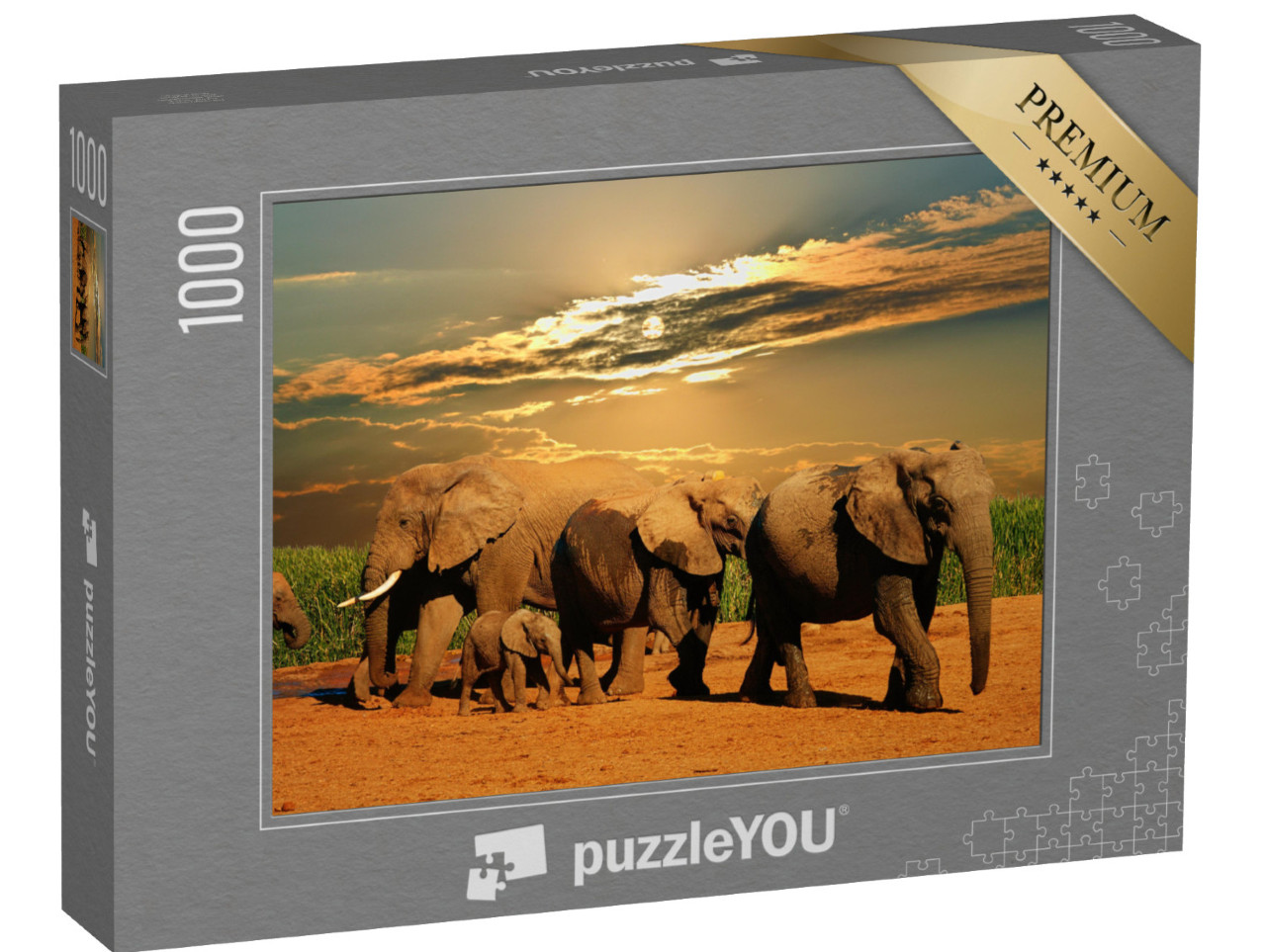 Puzzle „Branco di elefanti africani, Parco Nazionale Addo Elephant, Sudafrica“