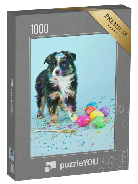 Puzzle „Simpatico cucciolo che dipinge le uova di Pasqua“