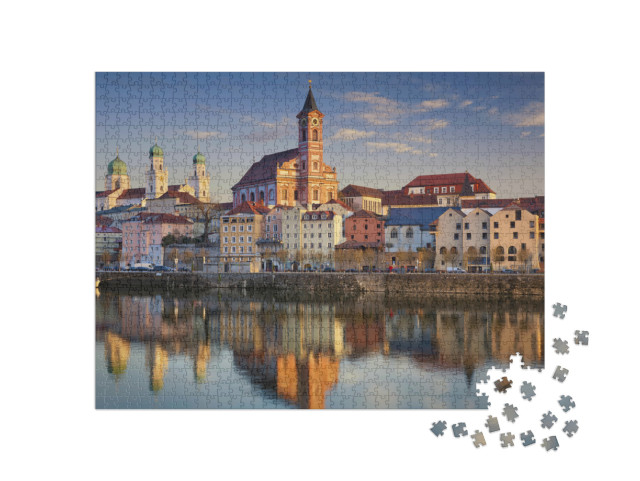 Puzzle „Vista di Passau al tramonto, Baviera, Germania“